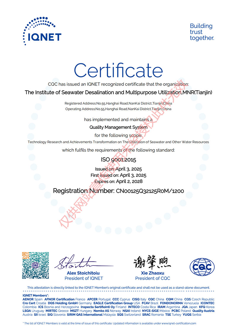 國內合作交流:自然資源部天津海水淡化與綜合利用研究所自建所以來,始終重視加強與科研院所、高校和企業等的學術交流與合作,不斷提高海水利用技術研發和成果轉化能力。積極開拓科技交流合作范圍......