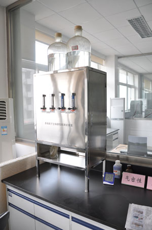 性能及技術指標:具備一定高度,造成液差;儀器頂部能夠承載10L以上溶液重量;面板上有兩組可調流量計,控制溶液流量;底部有托盤,收集廢棄溶液。