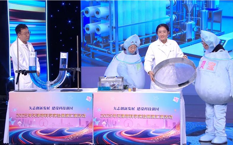 展演中,我所在團隊創新性地將太空“循環水”系統與地球海水淡化技術相結合,巧妙運用生活中常見物品作為演示道具,生動直觀地演繹了反滲透膜的篩分機理及反滲透海水淡化的核心原理。同時,向觀眾系統介紹了我國反滲透技術的多元應用場景——從家用凈水器,到海島與船舶使用的海水淡化裝置,再到空間站水循環處理乃至南極科考站的海水淡化實踐,全方位增進了觀眾對膜法海水淡化技術的理解。此次獲獎,既是對我所在科普工作成效的肯定,也是對我所青年科技工作者科普能力的認可。