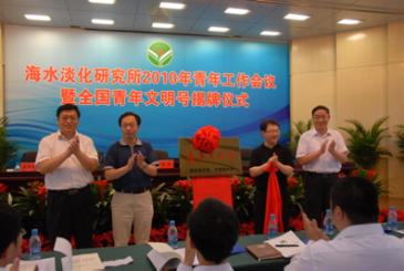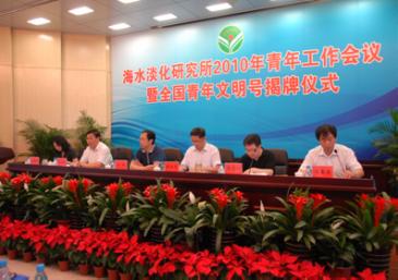 2010年6月4日,“淡化所2010年青年工作會議暨全國青年文明號揭牌儀式”在所六樓報告廳隆重舉行,屈強所長、錢金玉書記、邊鳴秋副書記,國家海洋局直屬機關黨委辦公室主任、局團委書記張志剛同志出席會議并為全國青年文明號揭牌。本次會議由所團委書記張春雷同志主持,所屬各黨支部書記、所內35歲以下青年共一百余人參加了會議。
