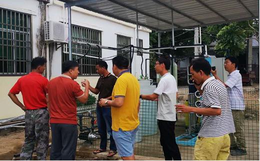 旦場村位于海南省東方市。當地居民多年來一直飲用地下水,地下水存在氟含量、硬度及鹽度嚴重超標等問題,嚴重影響居民身體健康。了解到該情況后,我所積極承接了該項目。針對當地水質特點及用水需求,我所認真組織、精心設計,研發了一套地下水處理裝置。該裝置采用了“一級反滲透淡化+恒壓供水”組合工藝,操作簡單,維護便捷,產水水質符合國家飲用水標準。示范裝置的建成解決了困擾旦場村多年的難題,為當地居民提供了穩定、可靠的高品質淡水。裝置順利交付后,旦場村居民對此表達了深切的謝意,希望我所能夠持續關注,也期盼能與我所建立長期的聯系,為他們的飲用水安全保障、美麗鄉村建設給予更多的支持和幫助。