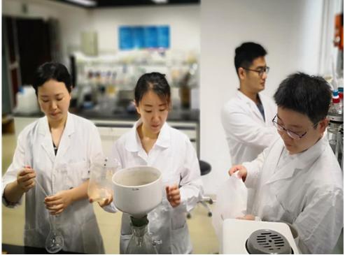 江蘇中旗科技2019年12月底完成中試車間技術改造,項目負責人準九零后鐘云龍博士和九零后王澤江同志迎著南京的第一場大雪,2020年1月2日赴江蘇中旗科技現場指導中試,1月3日和江蘇中旗科技現場技術人員進行了交流,中試車間現有冷卻系統溫度最低只有0~5℃,達不到新工藝室內試驗要求的-5℃,現有中試條件能否制備出四種合格產品?物料消耗與室內試驗有多大差別?為解決現場條件不足所引起的疑慮,兩位同志1月3日晚上回到賓館徹夜對中試條件下的物料及熱量進行核算和衡算,得出現有條件可以生產出符合相關標準要求的碳酸鉀、溴化鉀、氟化鉀和氰氟草酯產品,但氫溴酸消耗量高于室內試驗的10%的預判和初步結論。江蘇中旗科技隨即安排相關技術人員在實驗室進行了小試驗證,結果表明:冷卻溫度為5℃時氫溴酸使用量確實比-5℃時增加了10%,其消耗量為0.22噸/噸鹽,小試的四種產品質量符合相關要求,小試結果和兩位青年骨干的預判和初步結論相吻合。