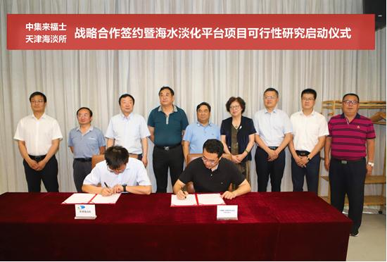 6月16日,我所與中集來福士海洋工程有限公司簽訂海水淡化項目意向合作協議。副所長張雨山、開發處處長初喜章、淡化室副主任趙河立,煙臺市海洋發展和漁業局局長李傳強,煙臺市海洋經濟產業招商辦主任王磊,中集來福士海洋工程有限公司副總裁李明高等領導出席了簽約儀式。