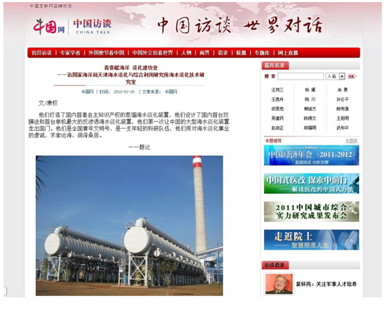 “青春獻海洋,淡化建功業”專題報道網址鏈接為:http://www.china.com.cn/fangtan/zhuanti/sdxf/2012-01/16/content_24417835.htm。