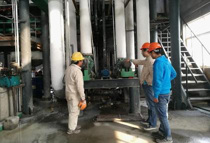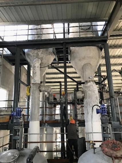 合同簽署后,企業迫切期望盡快實施,?;页檎{骨干力量組成攻關團隊,克服時間緊、任務重、大型工程設計經驗不足等困難,利用新購置的PDMS三維設計軟件,在1個月左右的時間內完成成套工藝包設計并交付業主。在工程實施過程中,?;叶啻闻汕岔椖拷M成員赴現場進行督造和技術指導,同時編制完成該項目的操作規程、安全規程、試車技術方案、作業指導書和產品檢測操作規程等相關技術文件。9月底該項目完成設備的購置安裝、管路電纜的敷設工作并通過檢查驗收,對相關操作人員進行系統的操作和安全培訓,為該項目的順利開展奠定了堅實基礎。