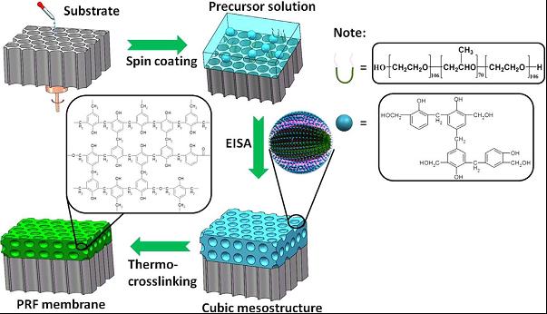酚醛樹脂做為一種重要的化工材料,由于其具有良好的耐熱性、熱塑性、高產碳率和低成本而廣泛用于制備無機基底支撐的微孔/介孔碳膜材料,這些膜材料主要用于氣體分離和超濾。另外,由于酚醛樹脂具有豐富的羥基能與聚醚表面活性劑(F127、P123等)產生較強的氫鍵作用,有研究者以酚醛樹脂和正硅酸乙酯為原料F127作為模板劑,通過高溫焙燒,制備了具有有序六方結構的碳/氧化硅復合膜,該膜具有良好的真空膜蒸餾效果。然而在壓力驅動脫鹽膜制備方面,酚醛樹脂的應用目前仍為空白。