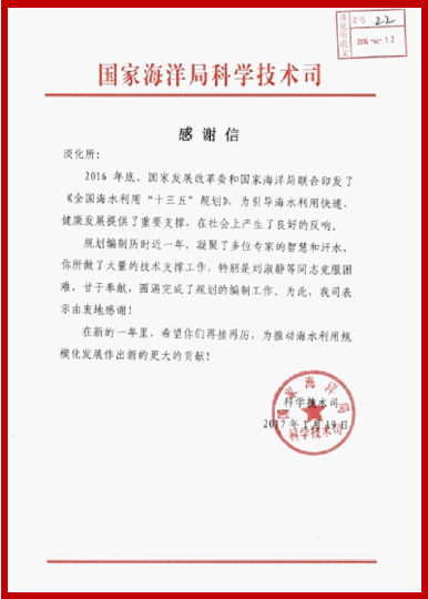 當前位置:首頁 >科技動態> 局科技司就我所《全國海水利用“十三五”規劃》編制支撐工作發來感謝信