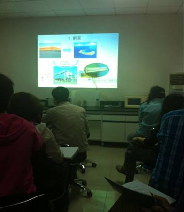 2015年4月28日,凈化室組織全室職工開展題為“海水淡化預處理技術研究進展”的學術沙龍,由馬宇輝同志做PPT匯報。
