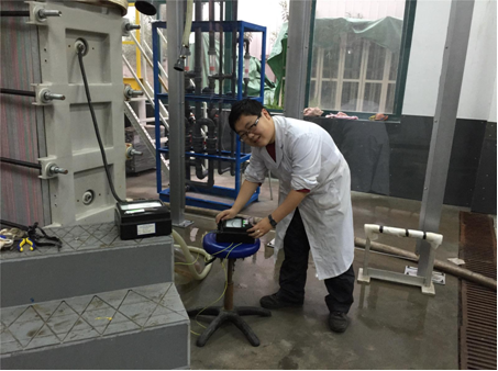 由于電滲析裝置體積大質量重,無法送檢,檢測只能在客戶現場進行。埃爾公司第一次委托第三方檢測機構進行測試,當天上午11點,質檢中心檢測人員攜帶超聲波流量計、直流電壓表、直流電流表、氯離子滴定分析標準溶液及滴定器具等來到現場后立即投入了緊張的測試工作,經過測試儀表安裝、溶液配制、濃度分析調整、裝置參數調試、穩定運行、測試記錄、滴定分析等一系列過程,一直工作到晚上9點圓滿完成測試任務。