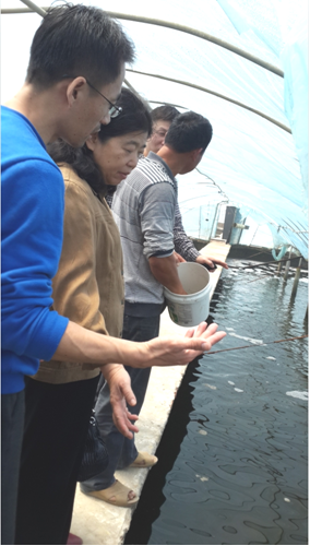 4月10日,李琳梅所長、曹軍瑞副處長、初喜章副主任一行來到福建省長樂市文嶺鎮長文養殖場,對我所與開朗生態科技有限公司的合作項目“Bacta-Pur 菌劑應用于南美白對蝦海水養殖廢水處理”進行了現場考察與指導。在開朗公司項目負責人陳經理的陪同下,李所長對菌劑的投加、蝦的生長和水質情況進行了現場考察,聽取了開朗公司陳經理及我所現場水質檢測人員的工作匯報。