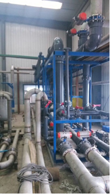 該新增超濾設備設計產水量為220噸/小時,分為兩組全自動連續運行超濾裝置,每組92顆超濾膜。設備運行后將能很好的改善原反滲透裝置的進水水質。目前,該設備即將安裝完畢,很快將進入調試階段。