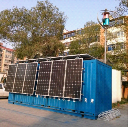 9月上旬,由海水淡化技術研究室承擔的風光柴儲海水淡化裝置在我所建設完成。本套裝置將新能源發電技術與海水淡化技術相結合,采用太陽能和風能作為能源生產淡水,在水電缺乏的地區有著很大的發展空間。