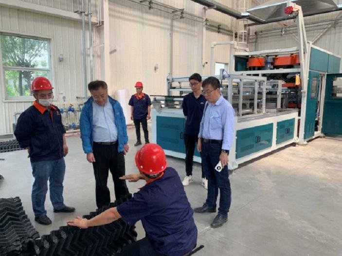 近日,“十三五”海洋經濟創新發展示范項目“海水冷卻塔塔芯構件產業化”項目組協同設備廠家在所科技處、平臺基地處以及研究室的大力支持下,在充分做好新冠疫情防控的前提下,克服了工期緊、任務重、現場環境條件差等諸多困難,歷時近2個月在臨港基地內完成了海水冷卻塔塔芯構件(淋水填料、收水器、噴頭)中試生產線的安裝以及調試運行,并成功生產出合格的產品。本中試線是臨港基地調試運行的第二條中試線。期間,黨委書記趙楠帶領相關部門深入設備調試現場了解設備調試情況。