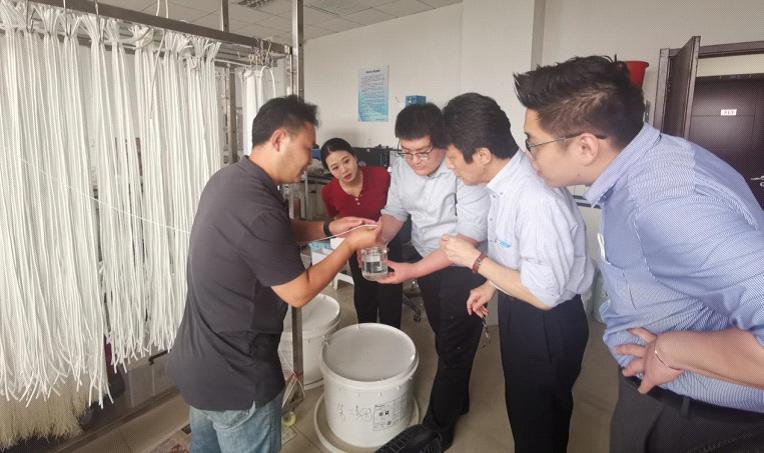 張雨山副所長對大金公司森賀副總經理的來訪表示熱烈歡迎,對大金公司與我所在聚四氟乙烯(PTFE)分離膜原料和PTFE制品性能評測等方面的合作表示支持。膜室技術人員向客人介紹了我所在PTFE分離膜研發、膜改性處理、膜組件研制和膜應用等方面的工作進展。森賀副總經理介紹了大金公司含氟樹脂產品類別和應用領域,重點介紹了常熟第一和第二工廠產品生產情況、深圳分公司南山事務所產品展示中心功能和水處理市場的發展思路,表示希望與我所進一步加強交流合作,共同促進PTFE分離膜在海水淡化過程的應用。張雨山副所長表示,我所在聚合物膜產品研發、膜性能檢測和膜過濾分離應用方面具備科研優勢,希望雙方加強合作,助力科技進步。