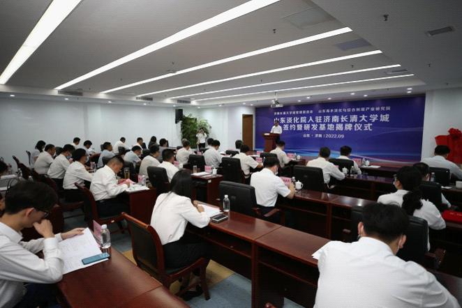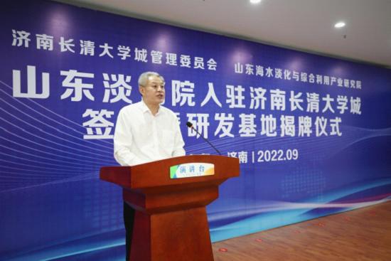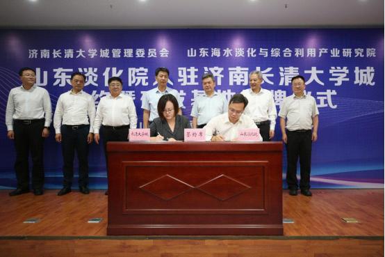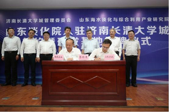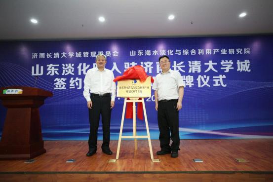 活動現場,濟南長清大學城管理委員會、山東國辰實業集團有限公司分別與海水淡化產研院簽約;張建東和趙楠共同為海水淡化產研院研發基地揭牌。