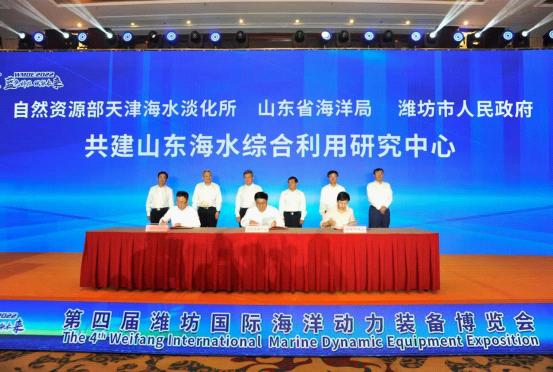 劉運指出,山東海水綜合利用研究中心簽約儀式,既是濰坊與高端海洋研究機構深化合作的重要舉措,也是第四屆濰坊國際海洋動力裝備博覽會的一項重要活動。濰坊海洋資源稟賦獨特,擁有海域面積1300余平方公里,地下鹵水靜儲量達60億立方米,原鹽、純堿、溴素產量分別占全國的1/4、1/6、3/4。三方簽約共建山東海水綜合利用研究中心,是部、省、市齊心協力、共同推動的結果,必將對濰坊海洋經濟高質量發展和山東海洋強省建設起到重要的推動作用。