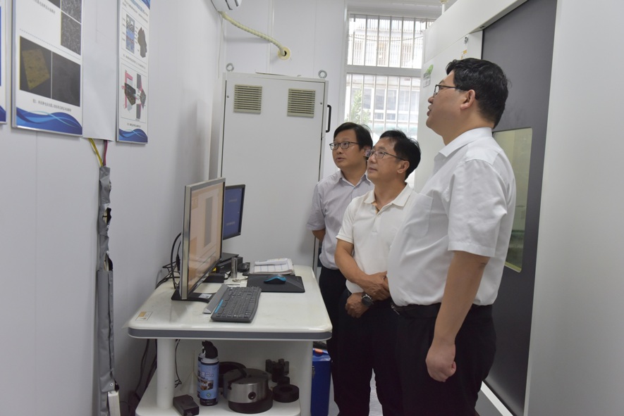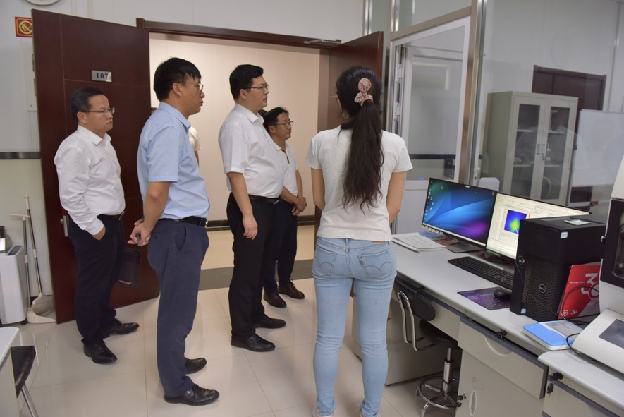 聶偉迅一行參觀了我所科技成果展室、納米顯微CT和小角x射線散射儀實驗室,仔細聽取了張秋豐和初喜章副所長關于科技創新和成果轉化工作的進展情況匯報,詳細詢問了儀器設備共享和科研成果服務地方經濟社會發展的現狀與實現路徑。