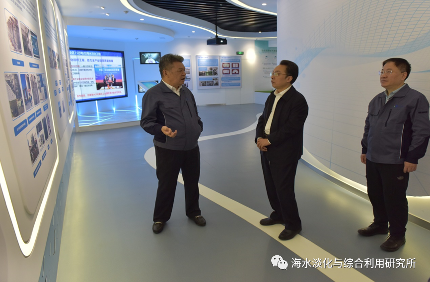 2023年10月9日上午,天津市人民政府黨組成員、副市長朱鵬到海水淡化所調研。南開區委副書記、區長聶偉迅,天津市科學技術局黨委委員、副局長方偉等有關領導陪同調研。