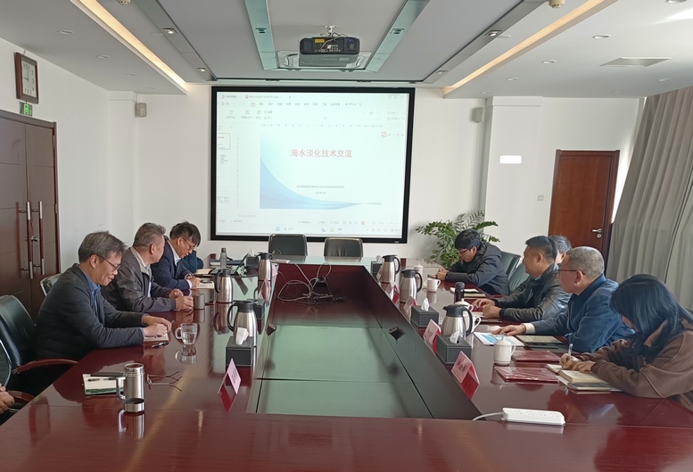 會上,阮國嶺所長對張劍副總裁一行來訪表示熱烈歡迎,向來訪的各位專家介紹了我所發展歷程和主要業務方向以及國家層面對于海水淡化產業發展的支持政策,重點介紹了我所技術牽頭的大型海水淡化創新示范工程情況。張劍副總裁介紹了深圳市近年來水務發展的基本情況,指出深汕地區建設海水淡化工程是解決當地水資源不足的必要措施,并邀請我所對當地海水淡化工程建設給予必要的支持。雙方就海水淡化水作為工業用水的注意事項、大型海水淡化工程工藝選擇、設備選購、能耗控制及運營管理等方面進行了深入探討,并就有關事項達成重要共識。