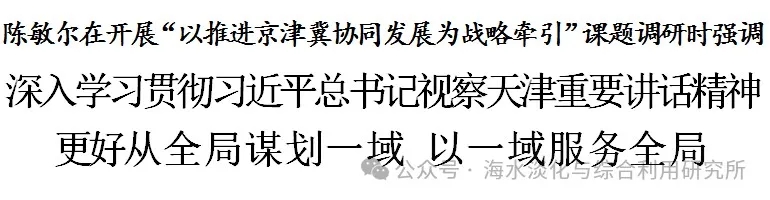 自然資源部天津海水淡化與綜合利用研究所位于天開高教科創園,是專門從事海水資源利用的科研機構。陳敏爾深入了解研究所科技研發、成果孵化轉化和服務天津發展等情況。他說,發展海洋經濟具有重要戰略意義,希望研究所充分發揮海水淡化技術優勢,主動融入國家創新戰略布局,加強關鍵核心技術攻關,推動科研成果市場化、產業化。市有關部門要深化拓展與大院大所合作,積極做好服務工作,推動更多創新成果落地,切實把我市教育、科技、人才優勢轉化為現實生產力。