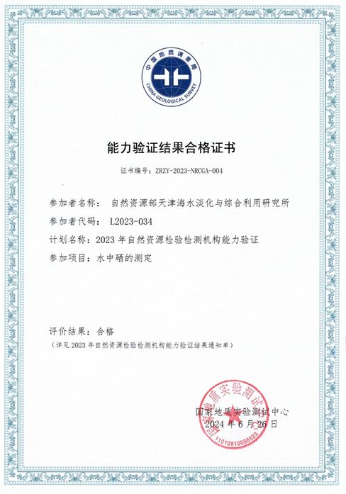 能力驗證是評價檢驗檢測機構能力的必要手段和重要依據,也是保證檢驗檢測機構質量管理體系持續改進和不斷提高的有效措施。質檢中心積極參加各類能力驗證活動,不久前參加的自然資源檢驗檢測機構“水中硒的測定”能力驗證也獲得“滿意”結果。今后,質檢中心將繼續加強海水利用檢測領域的能力建設和技術創新,不斷提升檢測技術水平和服務質量,為更好地支撐自然資源事業高質量發展貢獻力量。