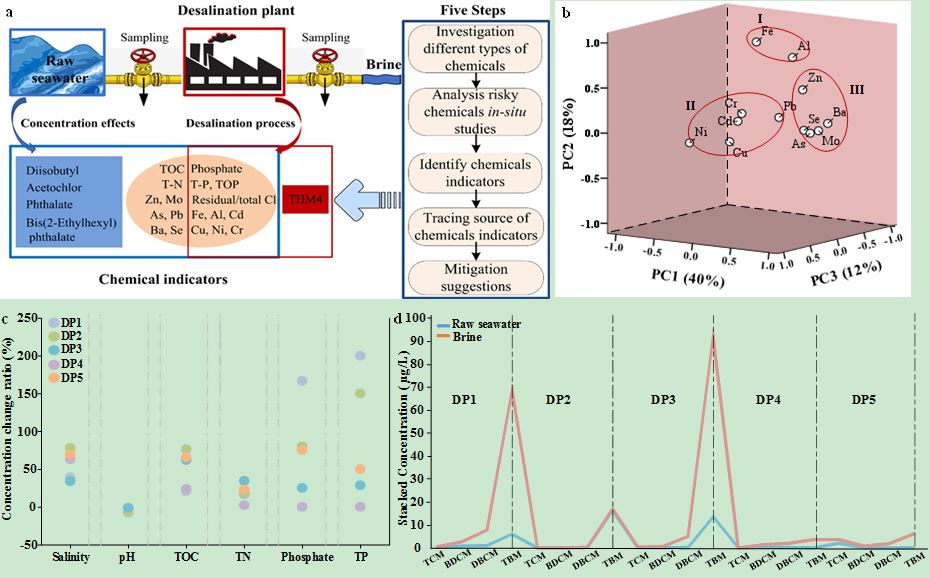 海水淡化是緩解全球水資源短缺的重要技術,但其副產物濃鹽水的排放可能會對海洋環境產生額外的壓力。為確保海水淡化產業與生態環境協調發展,識別濃鹽水中的環境影響因子并區分其來源(直接來自淡化工藝還是原海水的濃縮效應)成為關鍵科學問題。