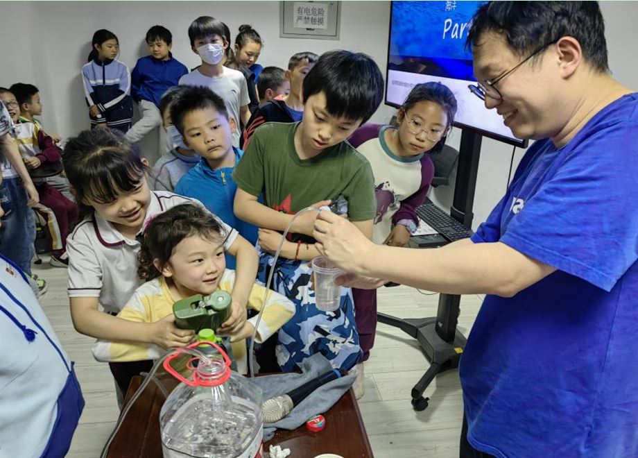 在互動問答環節中,孩子們踴躍提問,現場氣氛熱烈。隨后,在我所科研人員的指導下,大家分組參與了海水淡化裝置動手操作,利用簡易裝置模擬了海水淡化過程,將海水轉化為清澈的淡水。此次科普活動不僅讓居民了解海水淡化的科學原理和應用價值,還增強了大家的環保理念,進一步提升了節水意識。