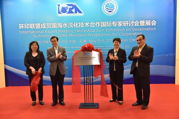 5月5日至9日,由國家海洋局天津海水淡化與綜合利用研究所、環印度洋聯盟區域科學技術轉移中心共同主辦,中國國家海洋局、環印度洋聯盟秘書處支持的“環印聯盟成員國海水淡化技術合作國際專家研討會暨展會”在天津召開。國家海洋局國際合作司張海文司長、外交部非洲司王世廷副司長、環印聯盟區域科技轉移中心墨蘭賈德主任出席了開幕式,并共同為環印聯盟區域科技轉移中心海水淡化技術協調中心揭牌。來自孟加拉國、塞舌爾、伊朗、肯尼亞、毛里求斯、莫桑比克、南非、斯里蘭卡、坦桑尼亞、泰國等10個環印聯盟成員國的政府官員、學者和企業代表,以及國內多家海水淡化相關企業的專家和代表共60余人參加了會議。