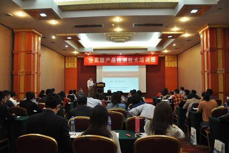 培訓分講座、觀摩演示和考試三個部分。我所檢測與監測中心潘獻輝主任作了《膜分離技術》的專題講座,介紹了膜的分類及特點、膜分離原理、分離膜制備、膜分離技術應用及海水淡化案例。并介紹我國膜技術標準現狀及質檢中心基本情況,內容涵蓋了膜技術指標重點內容分析、膜行業標準現狀總結及中國膜工業協會液體分離膜檢驗檢測中心介紹等方面。檢測與監測中心的李強、張艷萍和王旭亮分別圍繞反滲透膜產品和納濾膜產品檢測技術、中空纖維膜孔徑性能檢測技術和中空纖維膜滲透性能及拉伸性能檢測技術等方面進行了授課。全國分離膜標準化技術委員會的范云雙副研究員針對膜行業標準化工作現狀作了《膜技術標準化工作及全國分離膜標準化技術委員會介紹》專題講座。南德認證公司的Dr. Andreas Hauser作了關于水處理膜產品質量認證服務的講座。