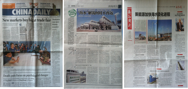 在央視、人民日報等平臺積極宣傳推介海水淡化技術的同時,中國日報、科技日報、中國能源報、廣州日報、北京日報和渤海早報等國家和地方媒體也相繼刊發了我所專家采訪專稿和署名文章。