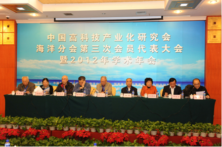 12月15日,中國高科技產業化研究會(以下簡稱中高會)海洋分會第三屆會員代表大會暨2012年學術年會在津召開。會議由中高會海洋分會、國家海洋局天津海水淡化與綜合利用研究所、國家海洋技術中心、中國海洋石油總公司、中國地質調查局、中國市政工程華北設計研究總院、天津塘沽海洋高新技術開發區管委會等七家單位共同主辦。軍事科學院原政委張序三中將、第二炮兵原副司令員楊桓中將、國家海洋局原副局長陳炳鑫等領導出席會議,來自涉海領域的政府機關、科研院所、高等院校、國有企業等專家和代表近70人參加了本次會議。