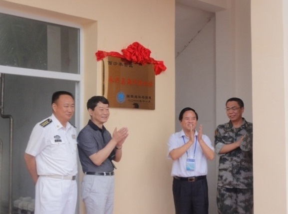 11月15日,國家海洋局向西沙水警區贈送海水淡化裝置揭牌儀式在永興島隆重舉行。國家海洋局黨組書記、局長劉賜貴在率考察組赴西沙永興島、琛航島慰問駐島軍民和中國海監執法人員期間專程參加了揭牌儀式,出席揭牌儀式的還有國家發展和改革委員會黨組成員、副主任穆虹,國家邊海防委員會副局長馬慶雷,國家海洋局黨組成員、人事司司長李春先,國家海洋局海監總隊黨委書記、常務副總隊長孫書賢,海軍司令部作戰部朱建良副部長和西沙水警區陳昌峰司令員等30余名領導,屈強所長陪同。
