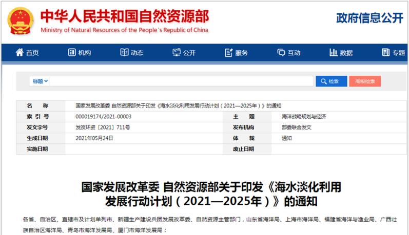近日,國家發展改革委、自然資源部聯合印發《海水淡化利用發展行動計劃(2021—2025年)》(發改環資〔2021〕711號,以下簡稱《行動計劃》)。作為技術支撐單位,我所先后支撐完成《行動計劃》文本起草、征求意見、修改完善等工作,經數易其稿,現已由國家發展改革委和自然資源部兩部門正式對外發布。