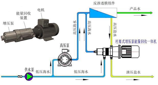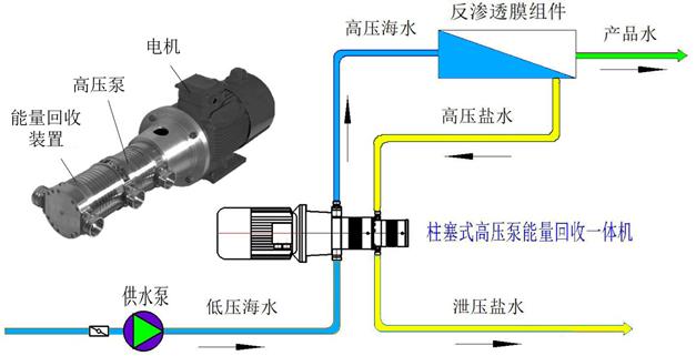 柱塞式高壓泵能量回收裝置集電機、能量回收設備、增壓泵或/和高壓泵為一體,能夠實現海水淡化系統中三大關鍵裝備:能量回收裝置、高壓泵和壓力提升泵的全部功能,具有小型化、高效率、低噪音、重量輕、易維護的特點。