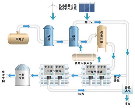 集成化海水淡化技術可滿足1000m3/d以下規模的海上各行業對淡水的需求,采用反滲透膜法海水淡化工藝,可耦合可再生能源,實現匹配太陽能、風能等可再生能源的穩定運行,集成化海水淡化技術具有短流程、低能耗、綠色工藝、模塊化、輕質化等特點。