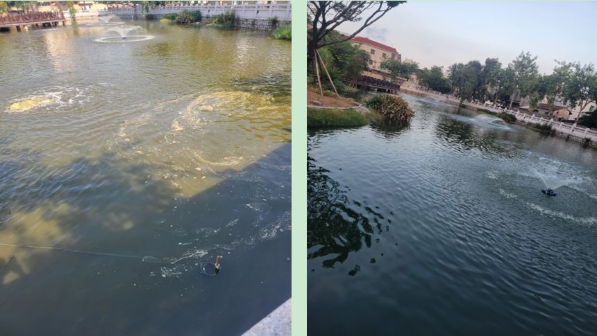 該項目采用高孔藻基凈水劑,實現原位修復,在不影響水體原生態的基礎上,有效改善水體的水質情況,迅速提升水體水質及透明度,有效遏制水質惡化,防止城市水體黑臭現象,平衡生態系統及水體的生態環境,長效優化水質,提升周邊居民的生活環境質量,改善城市環境。