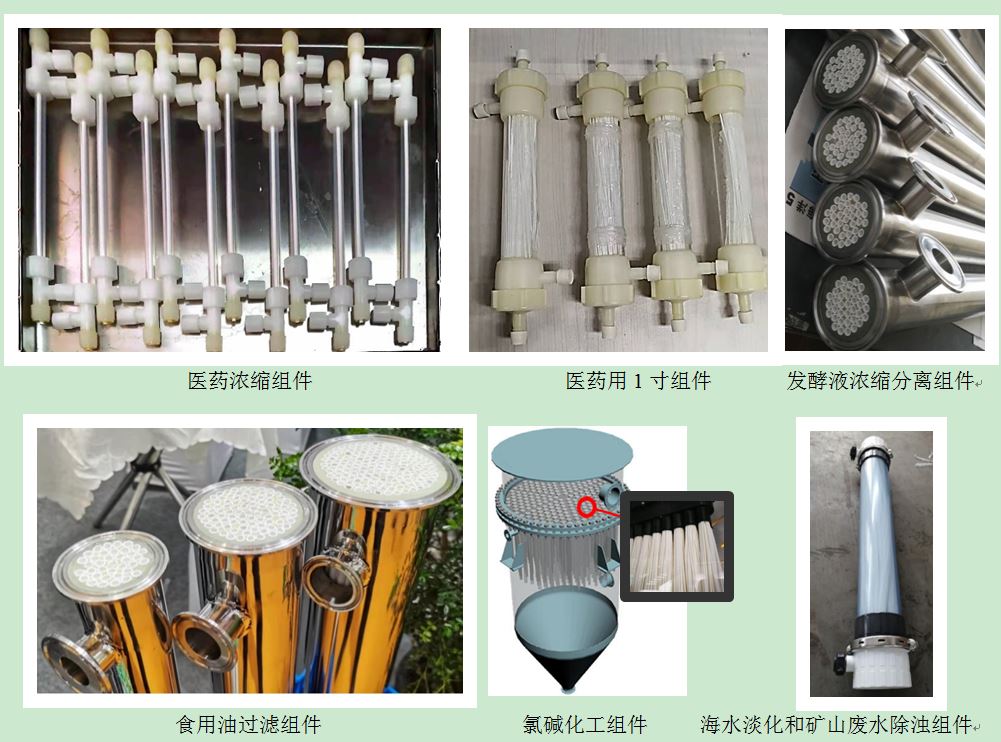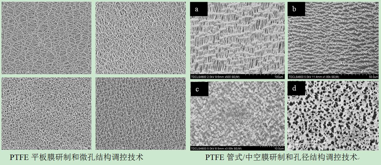 PTFE疏水性多孔膜應用于膜蒸餾、食用油過濾等過程,親水性多孔膜應用于醫藥、發酵液、水體除硬等過程。