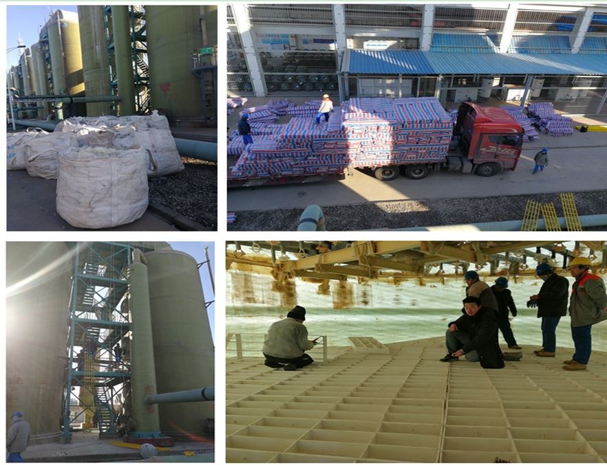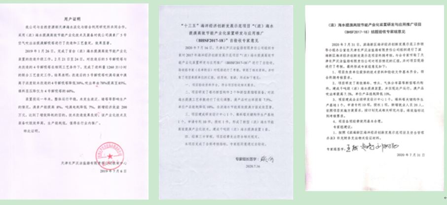 利用淡化所高效節能提溴產業化技術及裝備對吹出塔、吸收塔及捕沫塔進行全面升級,用時40天完成改造施工,在450 m3/h額定流量下高效節能提溴裝置吹廢較傳統提溴裝置降低5ppm;提溴收率達到90.5%;吹出塔壓降較傳統塔降低200Pa以上;在不增加原輔料消耗的前提下,高效節能提溴裝置較傳統提溴裝置可增產20噸/年。