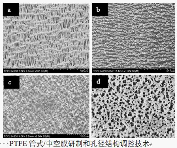 攻關形成2類PTFE微孔膜親水化改性技術,應用于親水化PTFE膜的改性,產品孔徑:0.2 μm- 1.0 μm、孔隙率:40 %- 80 %,形成的PTFE膜可滿足食品和工業生產需求,具備批量化生產能力。